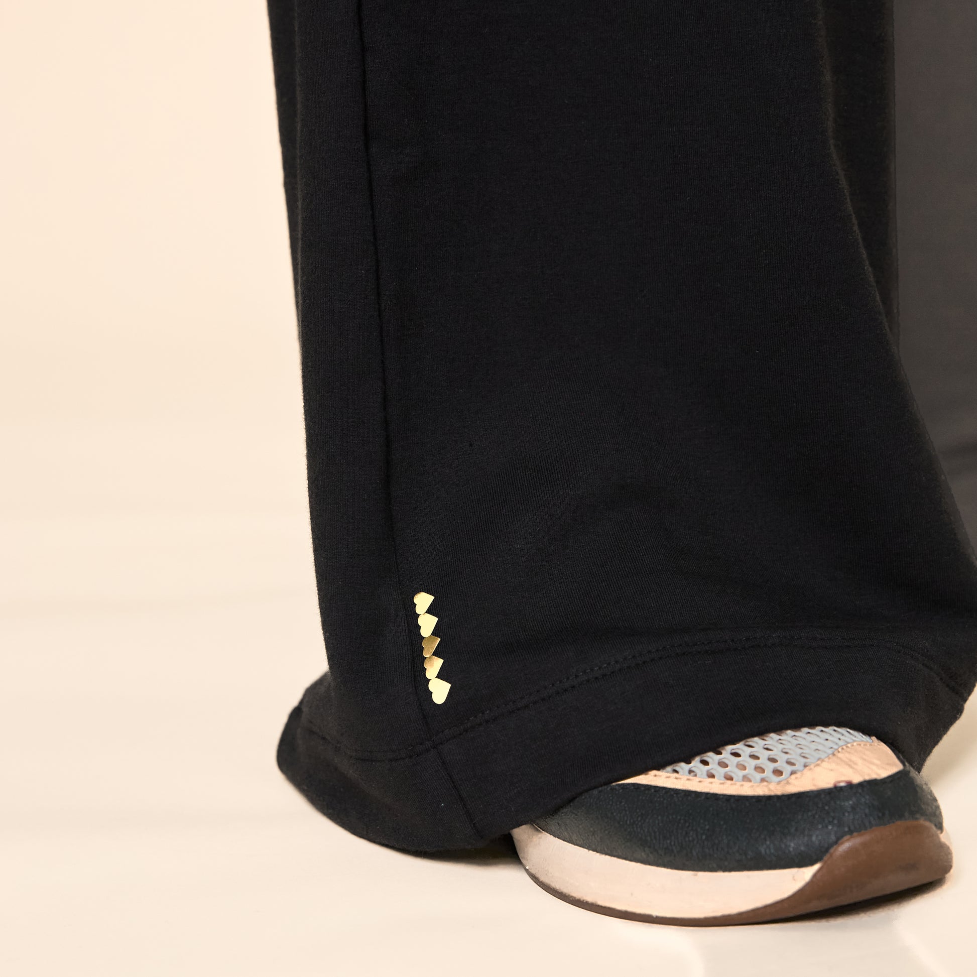 Express a message of be love and kindness with the five discrete gold hearts at the hem.